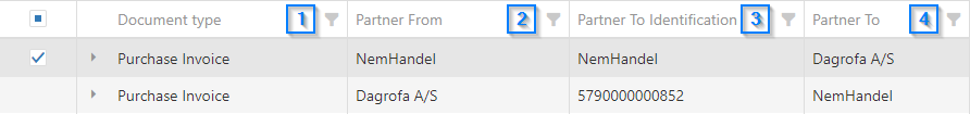 Each column contains information about the alert, such as the document type and partners involved. The different columns will be explained in detail below.