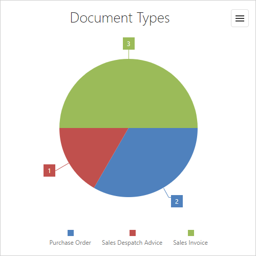 This chart shows how many documents of each document type have been sent the last month as a pie chart. The numbers represent the amount of documents of the specific document type that have been sent.
