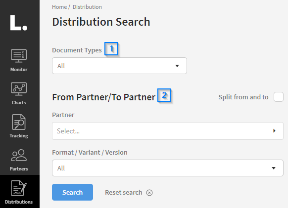 Below the partner selection field you can specify the Format/Variant/Version of the distribution. Select the dropdown to get a list of all Formats across your Link solution. You can either choose to search across all formats or select a single format.