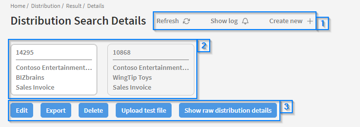 As the Distribution Search Details page contains a lot of elements, each part of the page will be divided into its own section, starting from the top of the page.