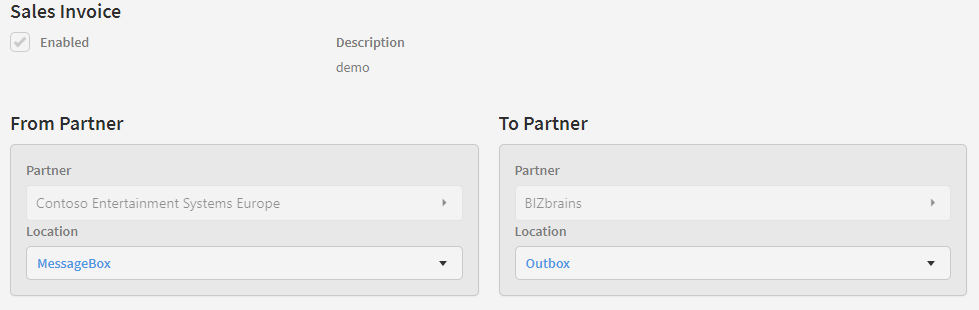 The options here are related to the To partner. If you want to receive an acknowledgement message from the document receiver, you should tick the ‘Expect acknowledgement’ checkbox. Doing so will cause all documents in this distribution to get the status ‘Awaiting acknowledgment’ instead of ‘Complete’ when the document has been delivered. When the acknowledgement message has been received, the document will then change to ‘Complete’ status.