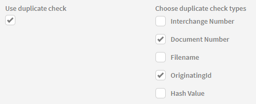 Sometimes you might want to check whether an incoming document already exists in your Link solution to avoid duplicates. This is done using duplicate check, which is an advanced feature available on distributions. There are several different types of duplicate checks. These will all be described in detail on this page. Depending on your permissions, some types may not be available.