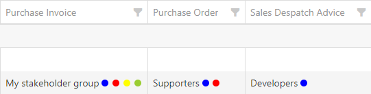 One stakeholder has been added to each document type, but with different notification settings. The colors are as follows: