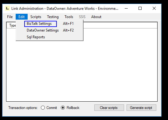 Comment: The menu name 'BizTalk Settings' is a misleading name. It should Link Settings, because the settings is also about Link settings and not only about Biztalk.