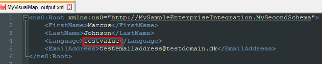 You must still create a .btm (visual map) file in your project and you must still specify which source and destination XSD schemas to use in the transformation. Drag a connection from a source schema element to a destination schema element