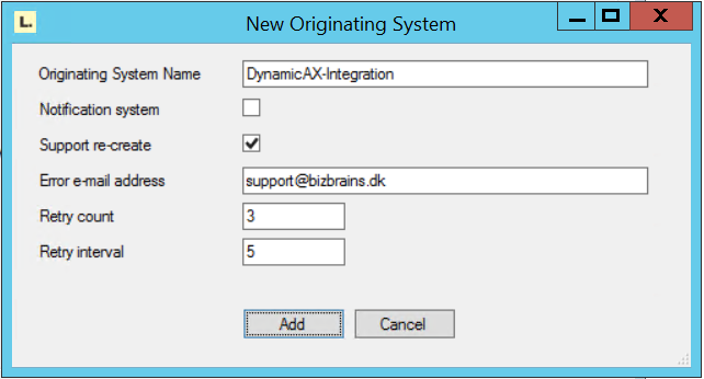 Click on "New…" link, to popup the new window for create new originating system. It looks like below.