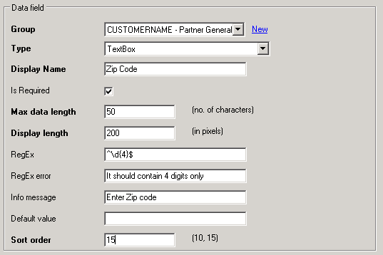 If we want to define Textbox, then it look likes as below. We can define validation rule using RegEx property, specify maximum data length, info message means that description when mouse occurs on it.
