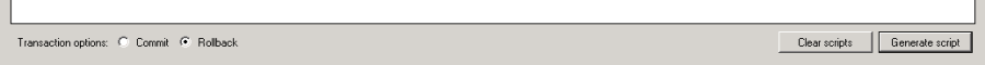 After filling all required details, then press button 'Add script'. It is going to add in middle panel of the main wizard. Then choose transaction options as 'Rollback' or 'Commit' and press the button 'Generate script' as show below.