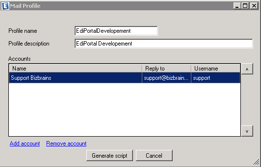 It provides to create or update the mail profile on EdiPortal based on the environment and also able to create new email account on sql server.