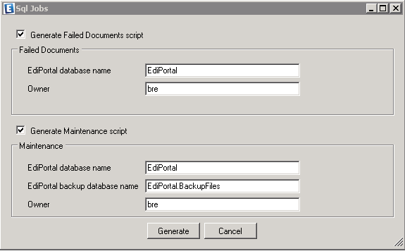 It provides to create sql jobs for find out failed documents in EdiPortal database and maintenance job. The failed documents script shows the documents are in FailProcessingDocuments, FailAwatingControlDocuments, InProcess documents more than 24 hours. The other Maintenance job does delete unused documents and rebuild all indexes. This interface is defined as below.