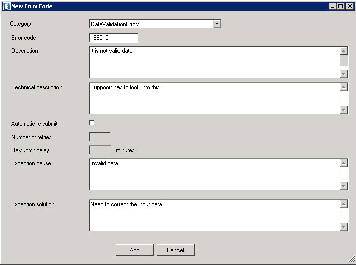 It provides to create a new error code based on category. This error can be raised from custom pipeline component or Orchestration. The error should be minimum 6 digits. The following figure shows that sample exception message.