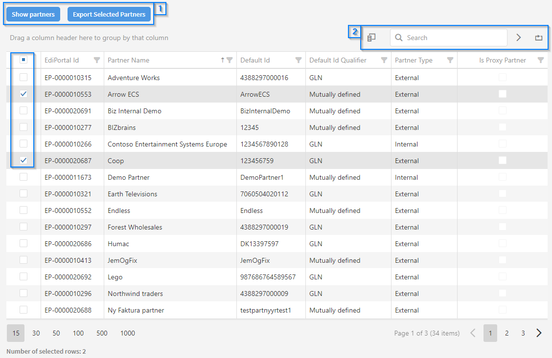 To select one or more partners, tick the checkbox in the leftmost column of the data grid as shown in the screenshot above.