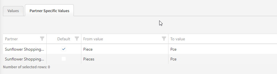 When a conversion table is available, different values can be entered for different partners, and it also supports that one partner uses different values for the same information.