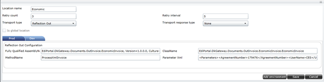 If you have a requirement for a type of outbound transport, that can’t be met by the transport types in the Link, there are two ways of doing this: use the Reflection transport type mentioned above or use the EDI Administration Tool to add a new transport type. The difference of these to is that adding a new transport type means adding support for a new BizTalk adapter in the Link. It is required that the adapter can be configured dynamically to transmit messages (read about how to do this in the section about using the tool). For using the Reflection transport type you need to implement a public method with one of the following signatures: