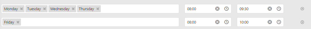 In this example, two triggers have been specified - one that applies on Mondays, Tuesdays, Wednesdays and Thursdays and one that only applies on Fridays.