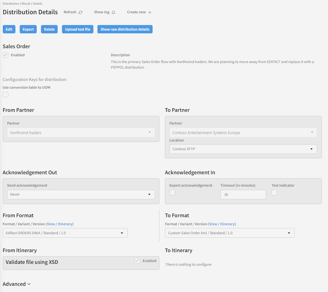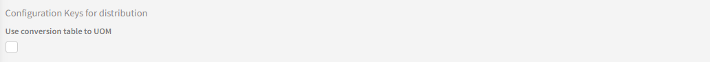 This section would quite often be empty, but In this example, we have a configuration key implemented to be available for distributions. It's called "Use conversion table to UOM" (Unit Of Measure) and it's aim is to increase the reusability of the mappings.