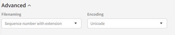 Under the "Advanced" headline you might find even more settings for a distribution. In this example, two file-naming parameters have been enabled for the selected format ensuring that it's possible to control the output filename and encoding. To read more about all the advanced configuration options, we advice to read the Developer guide.