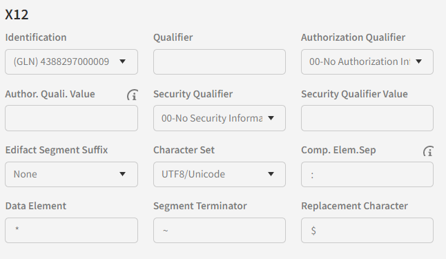 On this page you can configure the EDIFACT and X12 settings for the partner when sending and receiving messages. Youi will need to have knowledge about EDIFACT and X12 to understand these settings.