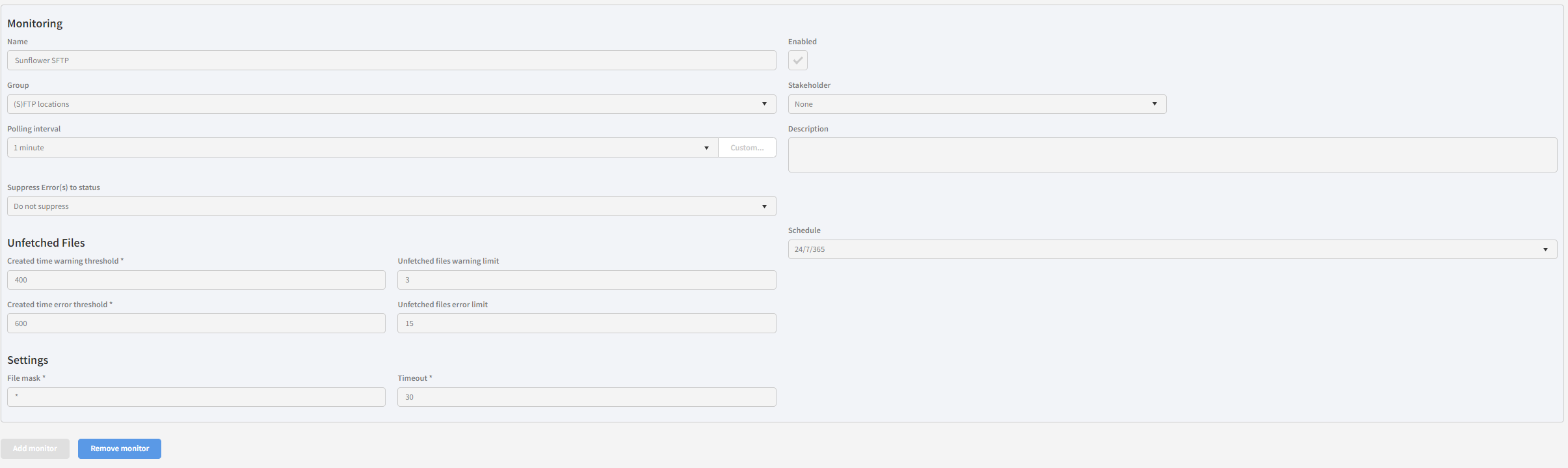 Apart from the settings that falls under Monitor item configuration, in the “Unfetched files” section, you can also configure some extra options for these monitor item types. These fields are explained below.