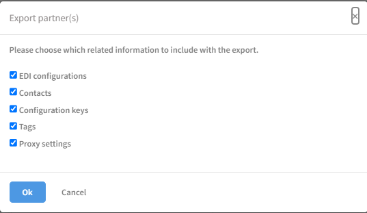 Note that it is also possible to export just one partner from the Partner detail page using the “Export” button from there.