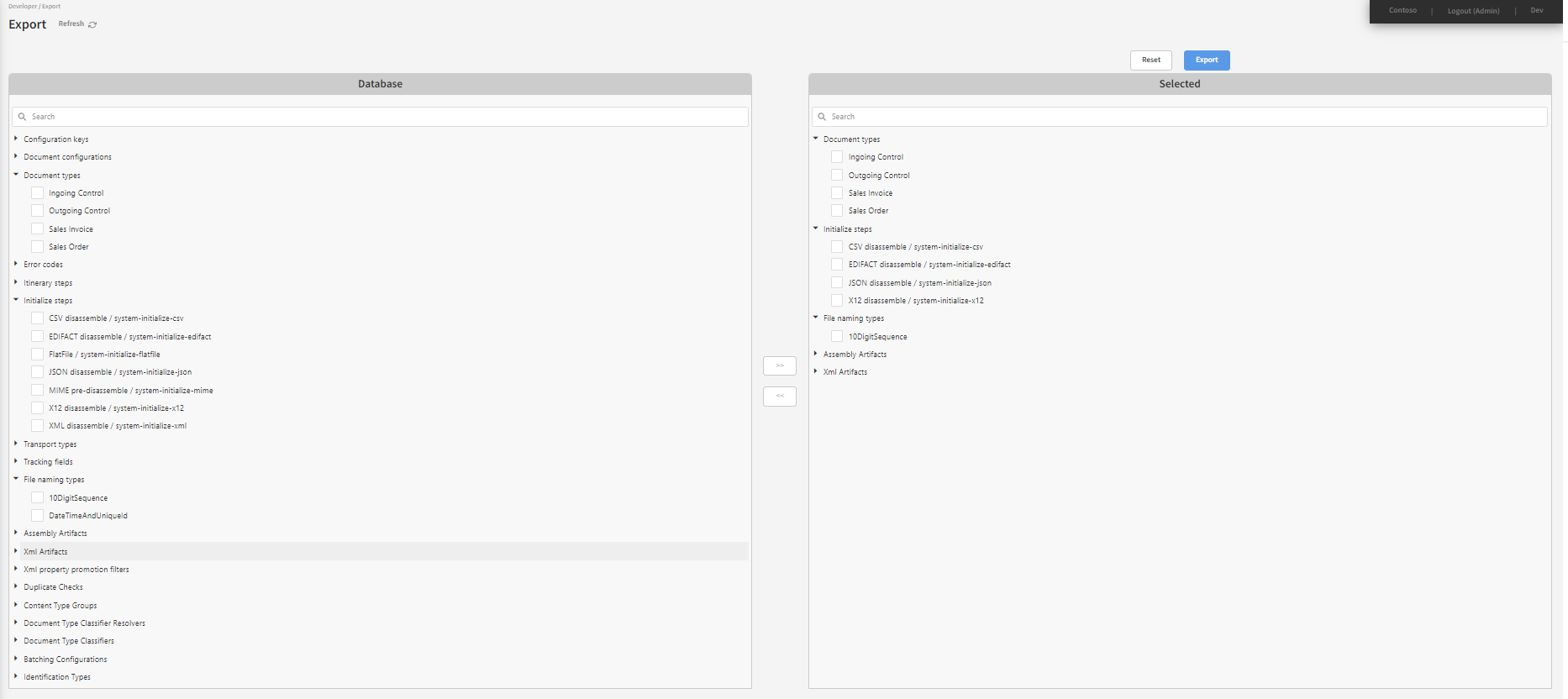 Here you will see a full overview of the entities that are exportable, and you can easily choose what you would like to include in an export.