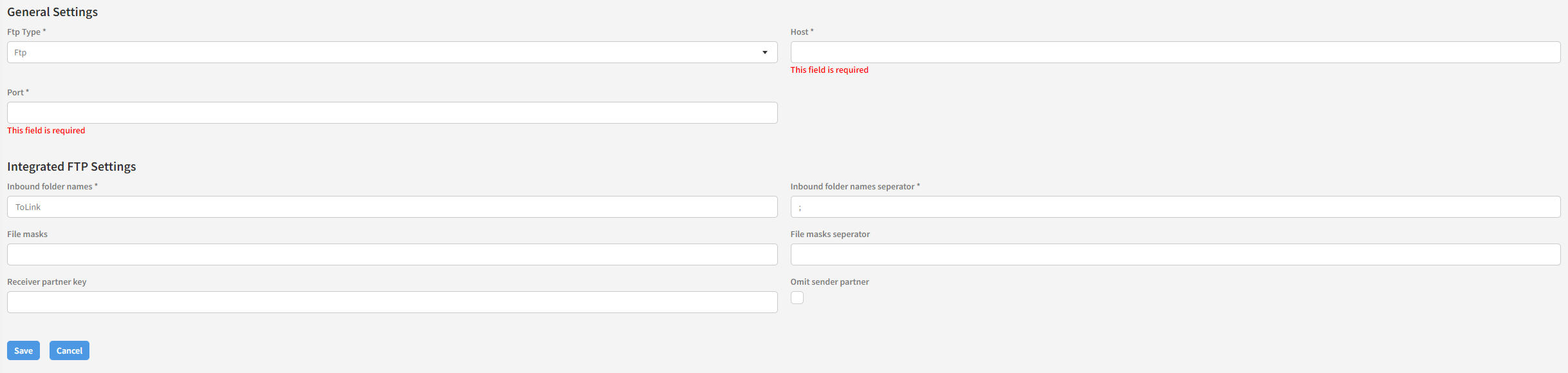 Incoming integrated FTP transport type