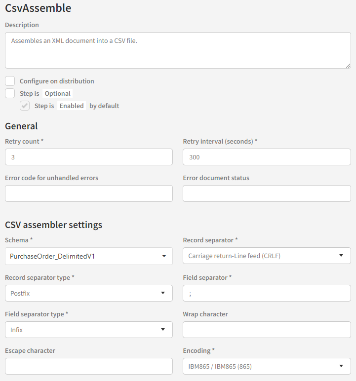 Only the fields in the “CSV assembler settings” section are specific to the assembler.