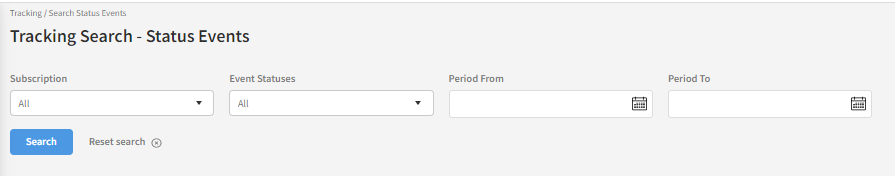 From the status event search screen, you can search for events related to your status event subscriptions setup. If you are unfamiliar with this concept, please read the Status events article.