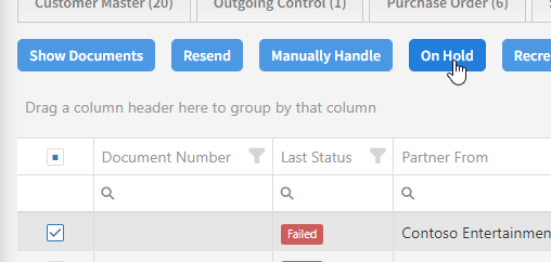 As described under Tracking, you can search for processed documents under the Menu Tracking. When a document fails, it will be labeled “Failed” in “Last Status”.