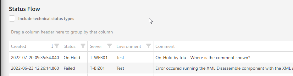 Your comment will be shown under “Status Flow” at the bottom of the Details page for the document:
