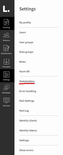 To manage stakeholders in Link you must click “Settings” in the main menu and choose “Stakeholders”.
