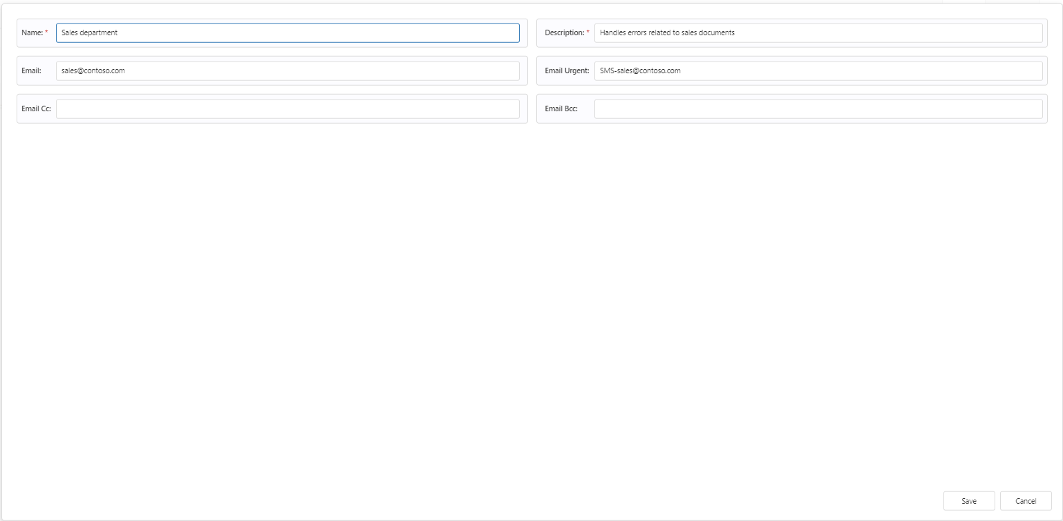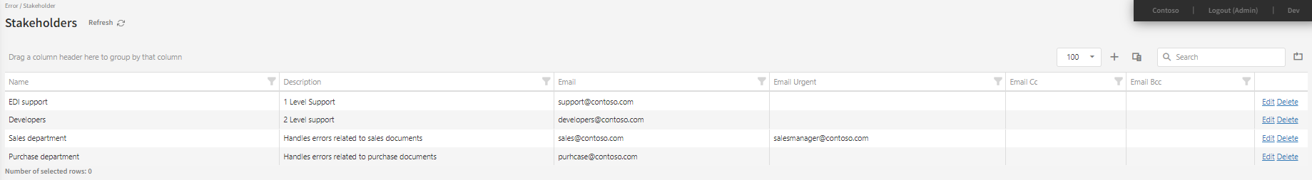 The error-handling setup can distribute the error-mails to Stakeholders based on the error category and/or error code, but it can also be based on the document type in play - or combinations of the two.